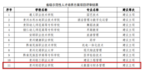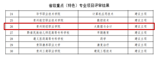 近日,贵州省教育厅2025年下半年职业教育“技能贵州”行动计划项目评审结果揭晓,贵州财经职业学院申报的信息化标杆学校、行业产教融合共同体、重点(特色)专业、示范性人才培养方案4个项目获批立项。