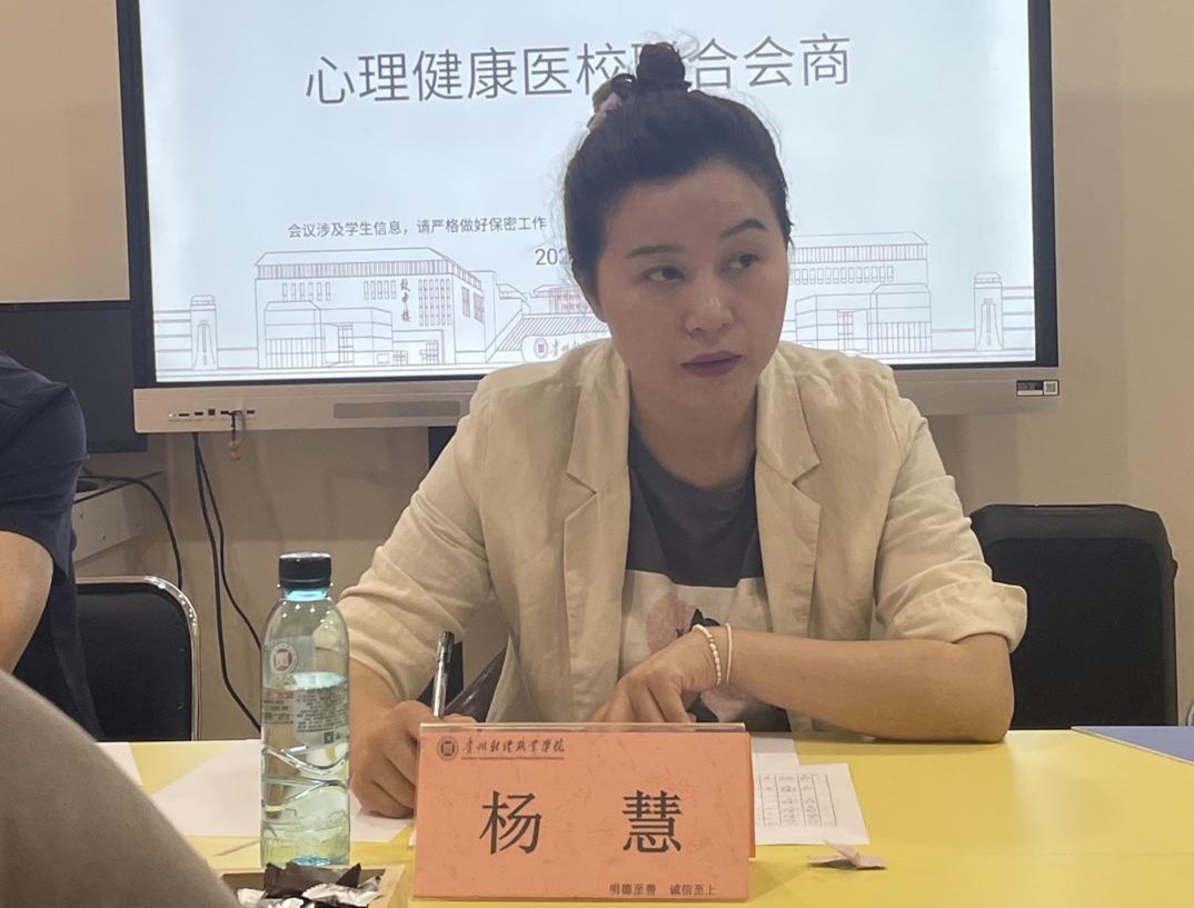 本次医校联合会商特别邀请了贵州省人民医院主治医师杨慧。我校党委委员、副校长莫林,学生工作部副部长施汝敏,工商管理系主任王万军,财务会计系学生管理负责人李炒桂,相关心理老师及辅导员出席本次会议,心理健康教师窦娟主持本次联合会商。