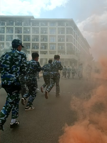 此次活动通过“理论教学+实景演练”相结合的方式开展。参与新生在教官和辅导员的引导下,用湿毛巾捂住口鼻、弯腰低姿,沿预定疏散路线快速撤离至安全集合点。整个过程紧张有序,仅用时5分钟便完成全员集结,展现了新生良好的应急反应能力。